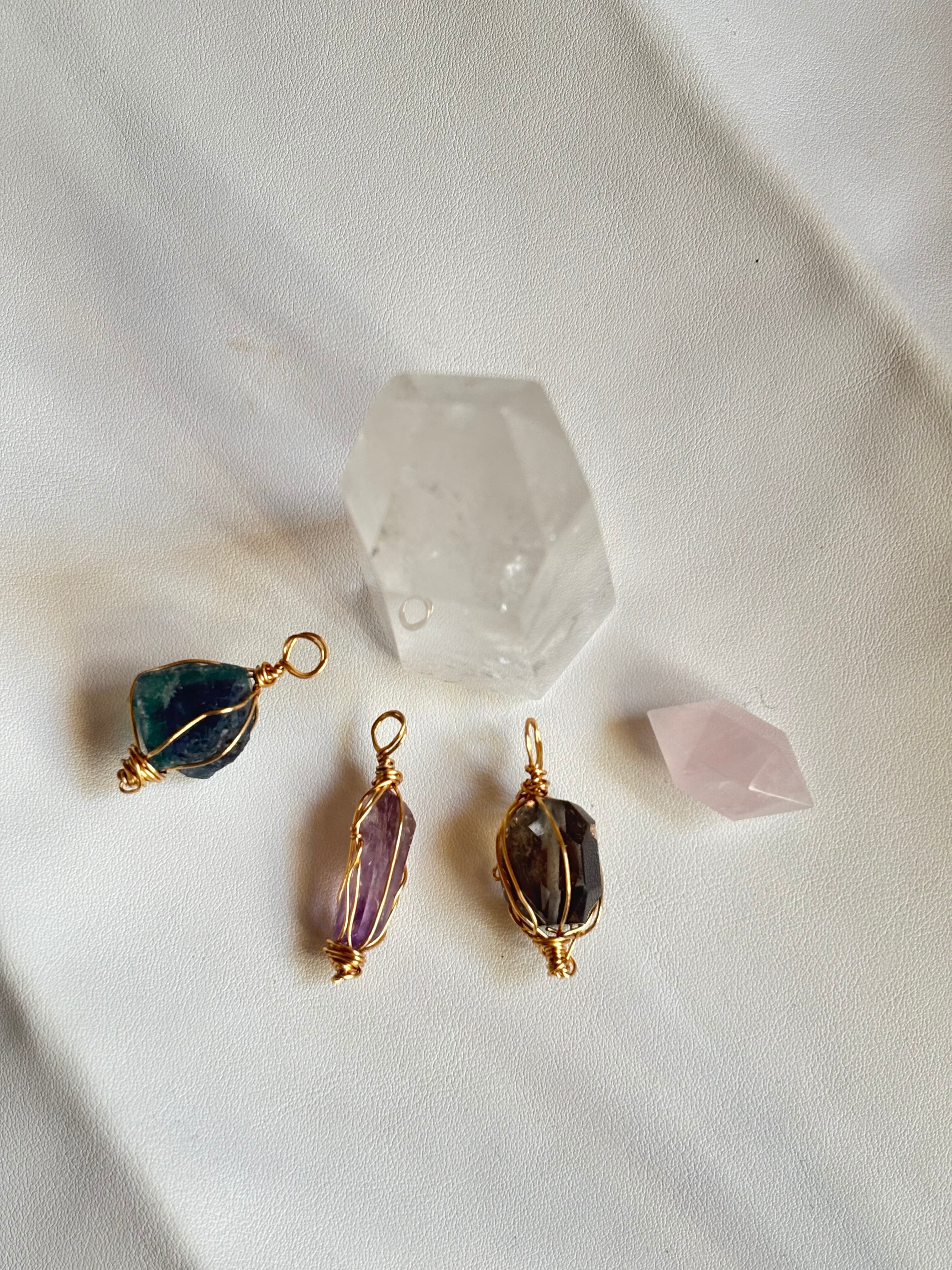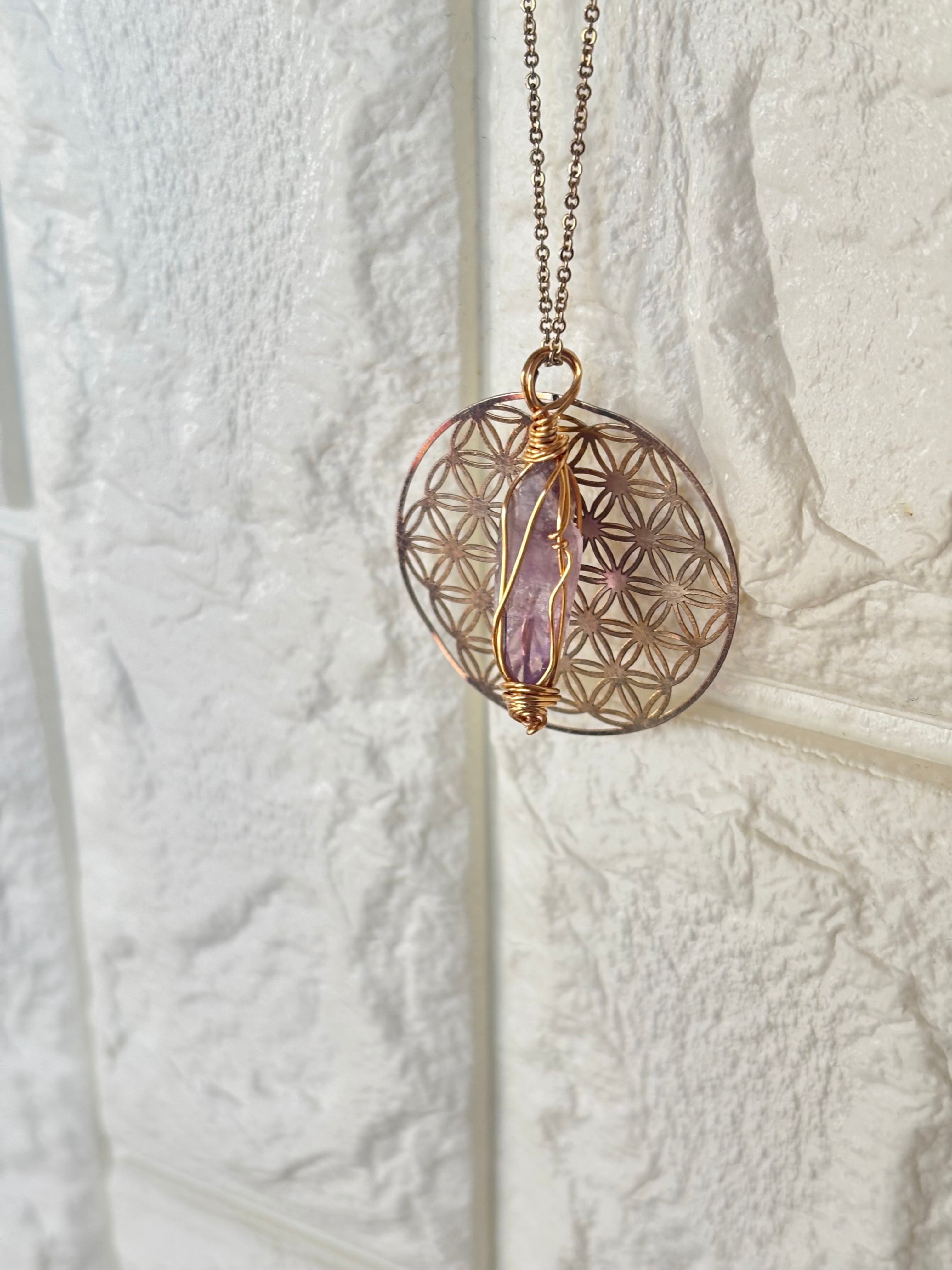天然石と神聖幾何学チャームを組み合わせた、神秘のペンダント